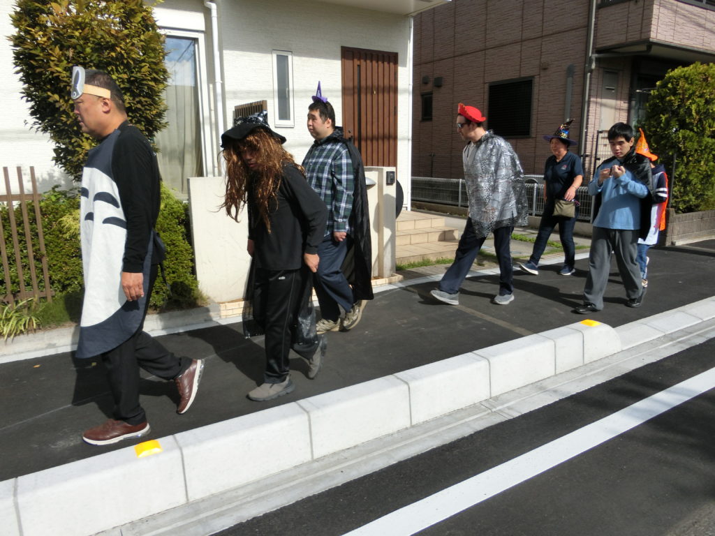さらには、仮装をしたまま散歩に出掛けるというハードミッションも敢行。ハロウィン当日ではなかったこともあり、これにはかなりの危険を伴いましたが(笑)、臆することのない7人の勇者たちが名乗りを挙げてくれました。君たち最高だぜ!!