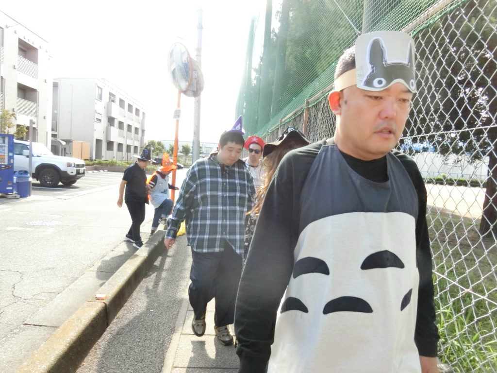 さらには、仮装をしたまま散歩に出掛けるというハードミッションも敢行。ハロウィン当日ではなかったこともあり、これにはかなりの危険を伴いましたが(笑)、臆することのない7人の勇者たちが名乗りを挙げてくれました。君たち最高だぜ!!