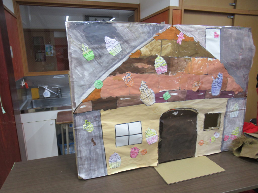 手作りのお化け屋敷に1人ずつ入り、ゴールするとポップコーンをもらえるという企画を行いました(*^^*)