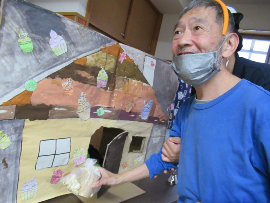 お化け屋敷の中で音楽がかかったり、急に太鼓が鳴るという演出にびっくりしている利用者さんもいましたが、ポップコーンをもらい、嬉しそうにしていました(^^♪
