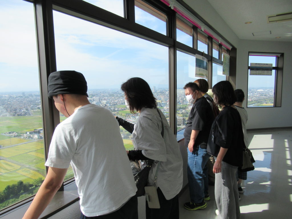 越谷展望台では景色を堪能し、展望台から見る田んぼアートには利用者さんは目を惹かれていました!!