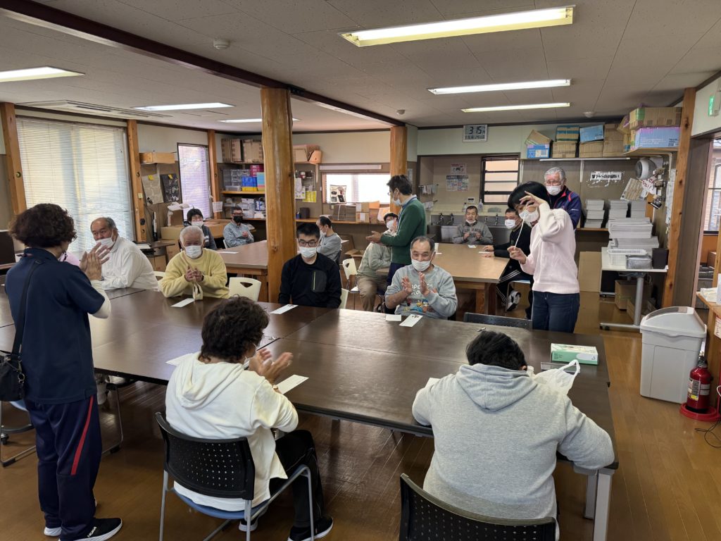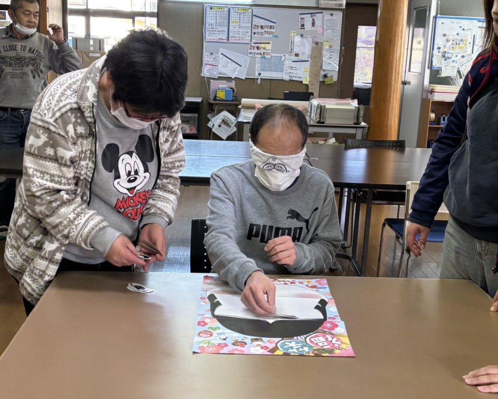 凧揚げ班では、「羽子板」に因んで、バドミントンもやりました!一緒にやった職員は、早くも筋肉痛に…。しかし、利用者様は、バドミントンをやった後に、凧揚げに走り回っていて元気一杯楽しんでいました!