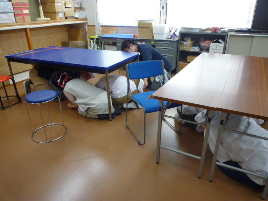 地震発生時には直ぐ机の下に避難し、その後の火災発生ではハンカチで口を抑えて落ち着いて避難できました。