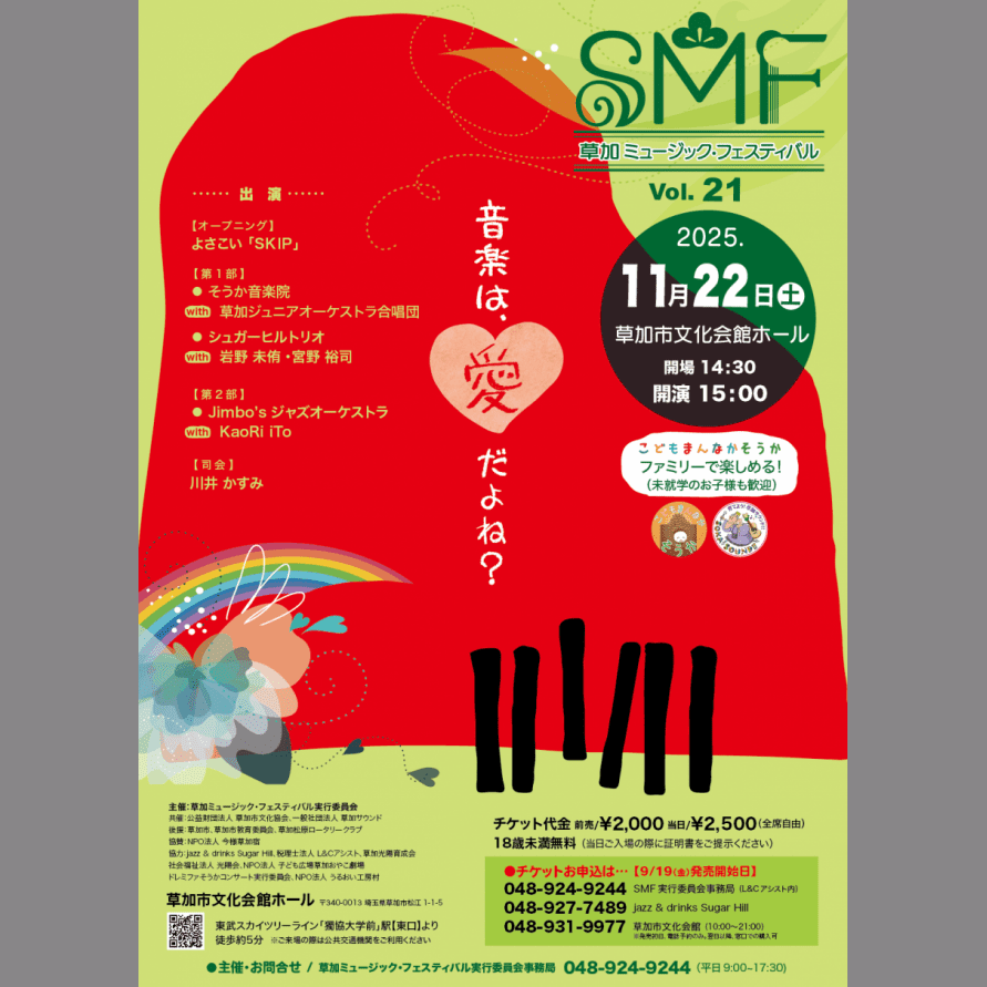 ②第21回草加ミュージック・フェスティバル 11月22日(土) 開場14:30 開演15:00 草加市文化会館ホール