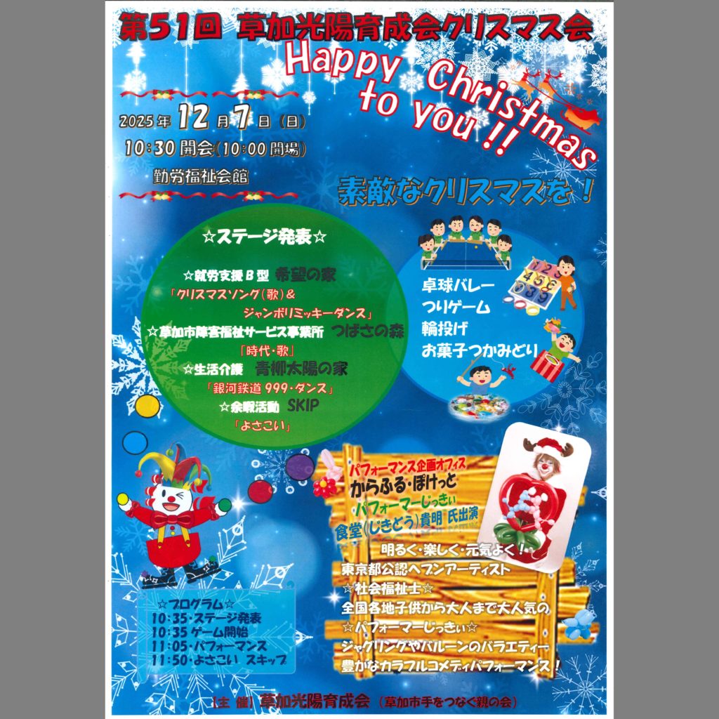 ④草加光陽育成会クリスマス会 12月7日(日) 開場10:00 開会10:30 草加市立勤労福祉会館