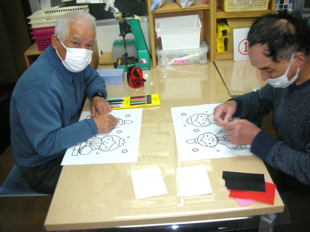 ベースになるイラストを「塗り絵」にするか「貼り絵」にするか、自分で選択してから製作に取り掛かります♪